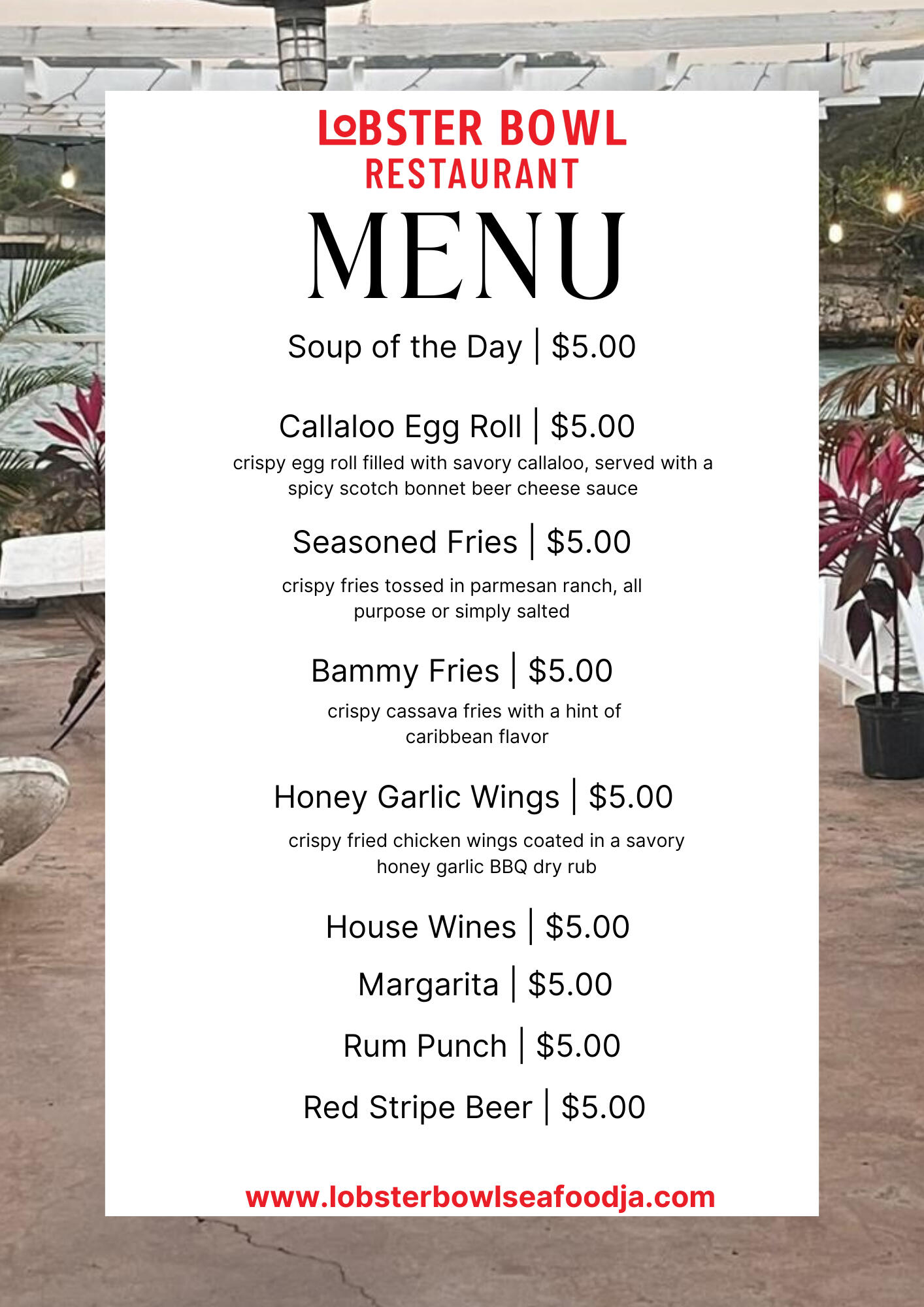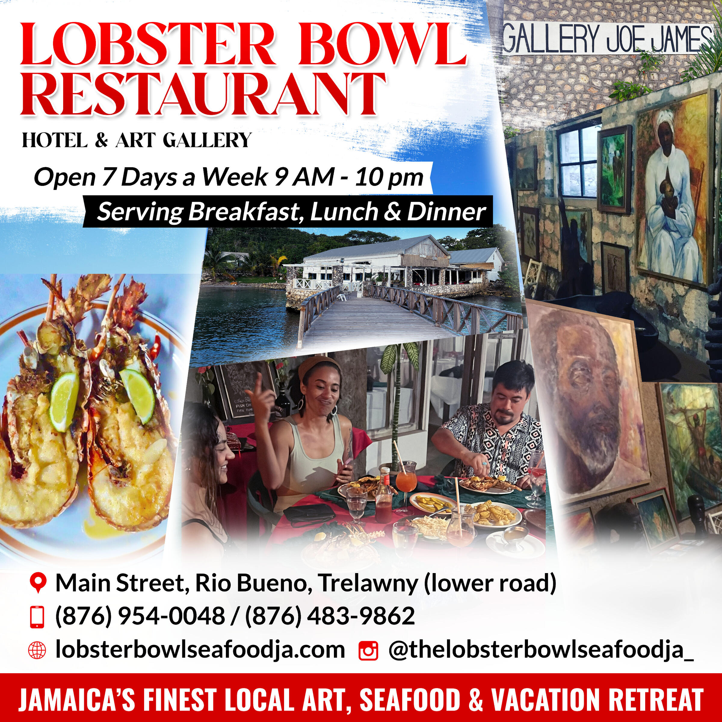 Welcome to the Lobster Bowl restaurant, where coastal elegance meets culinary mastery. Nestled in Rio Bueno, Trelawny, Jamaica, our restaurant is a symphony of flavors and scenic beauty. Immerse yourself in a dining experience that transcends the ordinary, as we showcase the finest seafood delicacies. From mesmerizing seaside views to our unique rustic ambiance - it's a journey of indulgence, where every moment is a celebration of taste, style, and the allure of the sea.